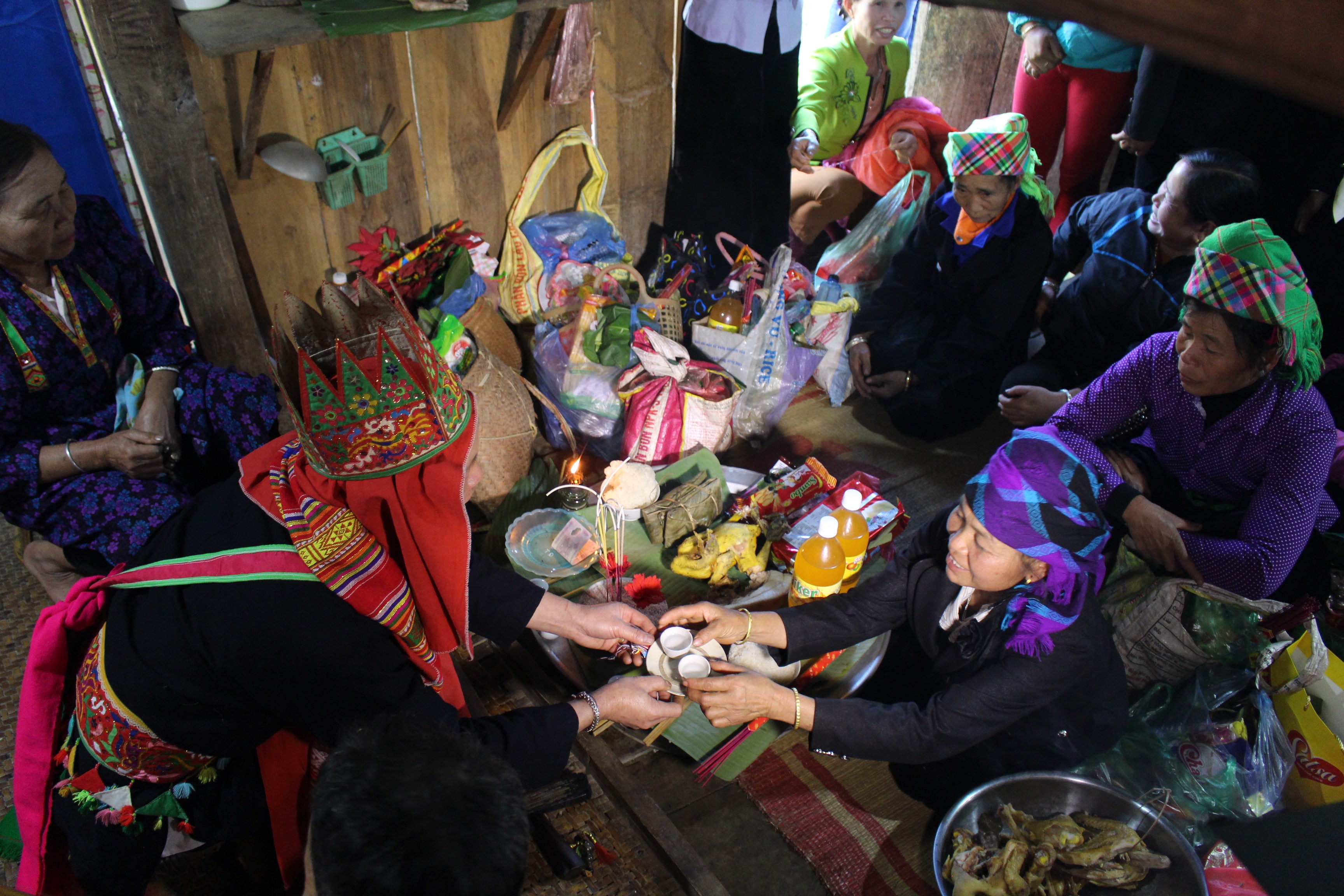 Mâm lễ cúng Then ở gian thờ Hỉnh một